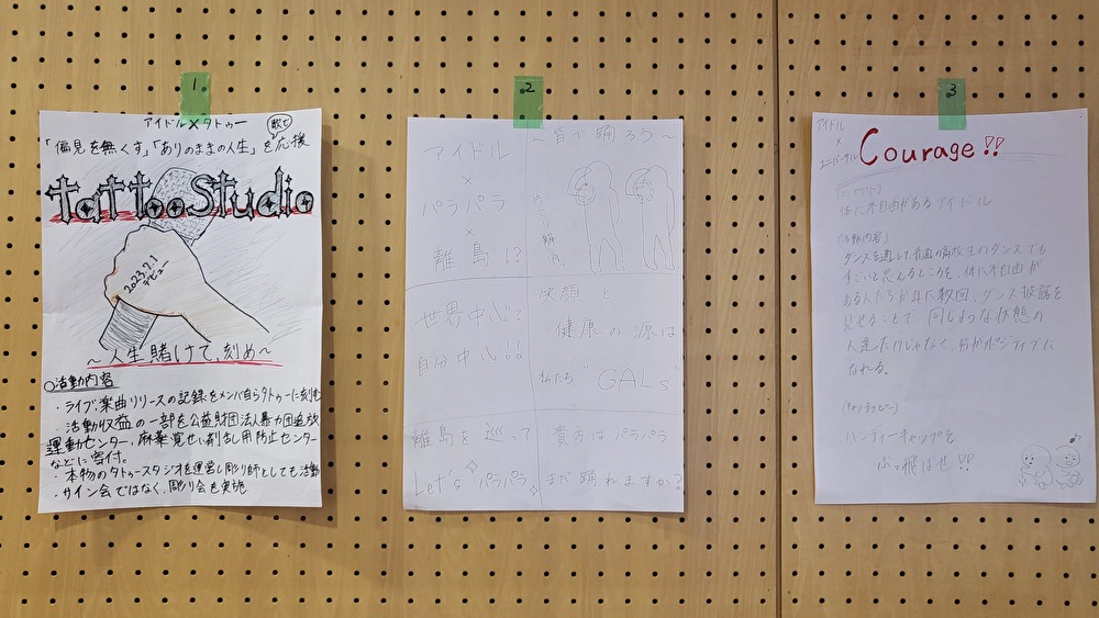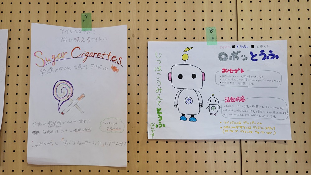 この実習では、「次世代アイドルを考える」というお題について考えてもらいました。