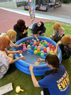 「夏祭り」をテーマに開催した今回、学内にお祭り用のやぐらを建てたり、どぶ漬けのドリンクやヨーヨー釣り、型抜きの屋台などを設置。お祭り感のあるコスプレイベントを企画することができました。