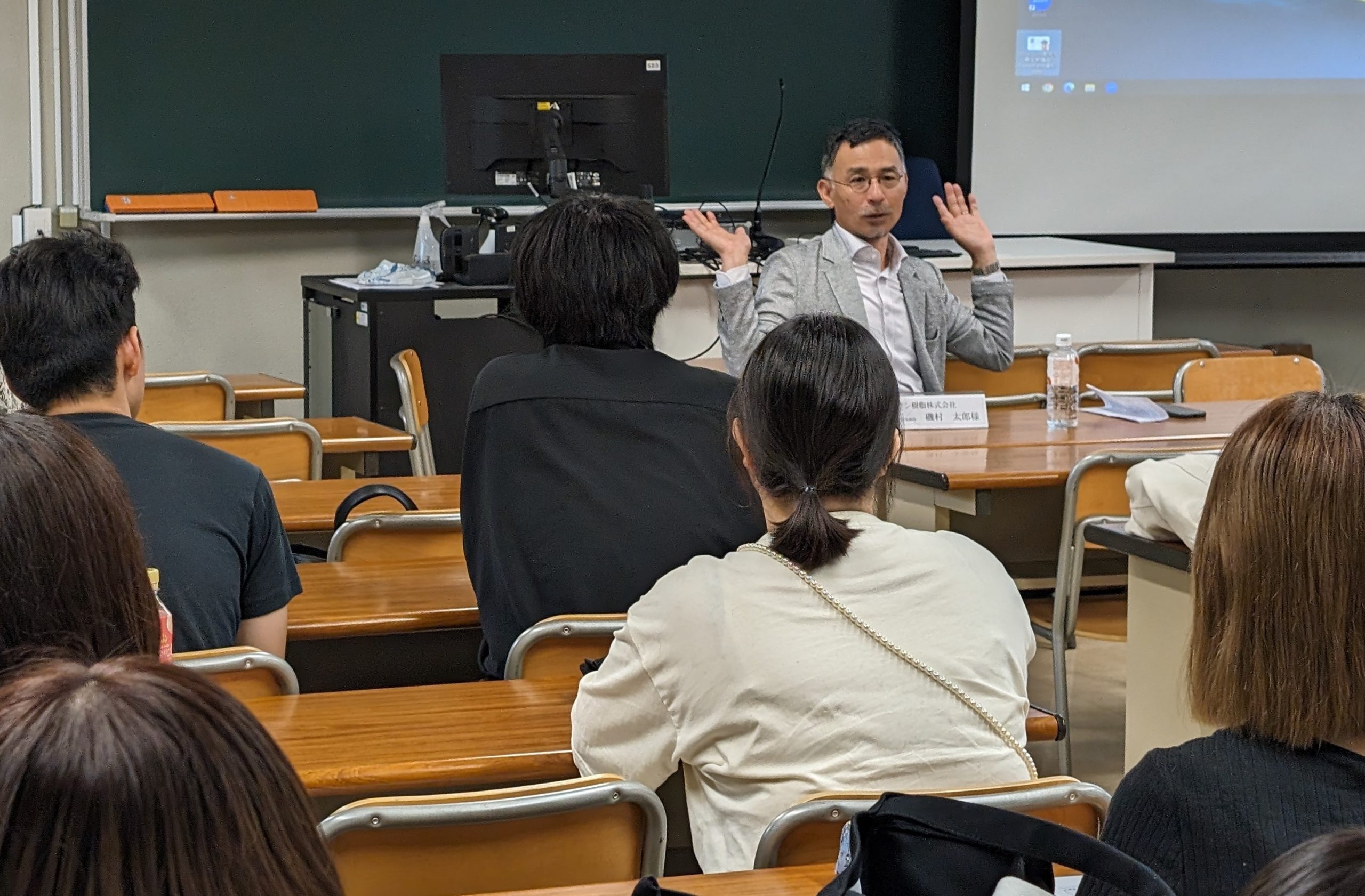 本企画は中小企業家同友会様のご協力により、プロフェッショナル・セミナーⅦ(就職)の授業内に企業の社長様をお招きし、グループワーク形式で「出前授業」を行っていただくものです。今回は2日間、延べ8社の社長様にご参画いただきました。