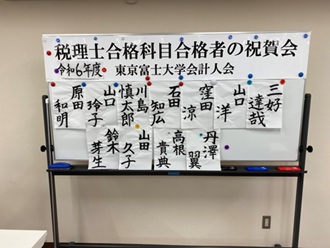 毎年度、恒例となっています税理士合格祝賀会(東京富士大学会計人会主催、会長若狭茂雄)が、令和7年4月5日(土)14時に本学の7号館1階で開催されました。