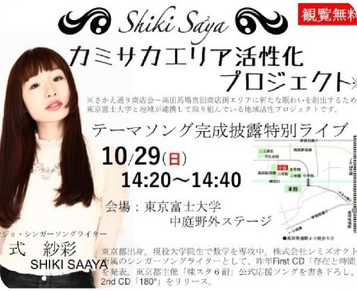 さかえ通りと宮田商店街併せた大学周辺エリア活性化を目指した取り組みです。これまでに店舗スタンプラリー、卓球イベントなどを開催したほか、地元ソングや散歩マップなどを作成しました。