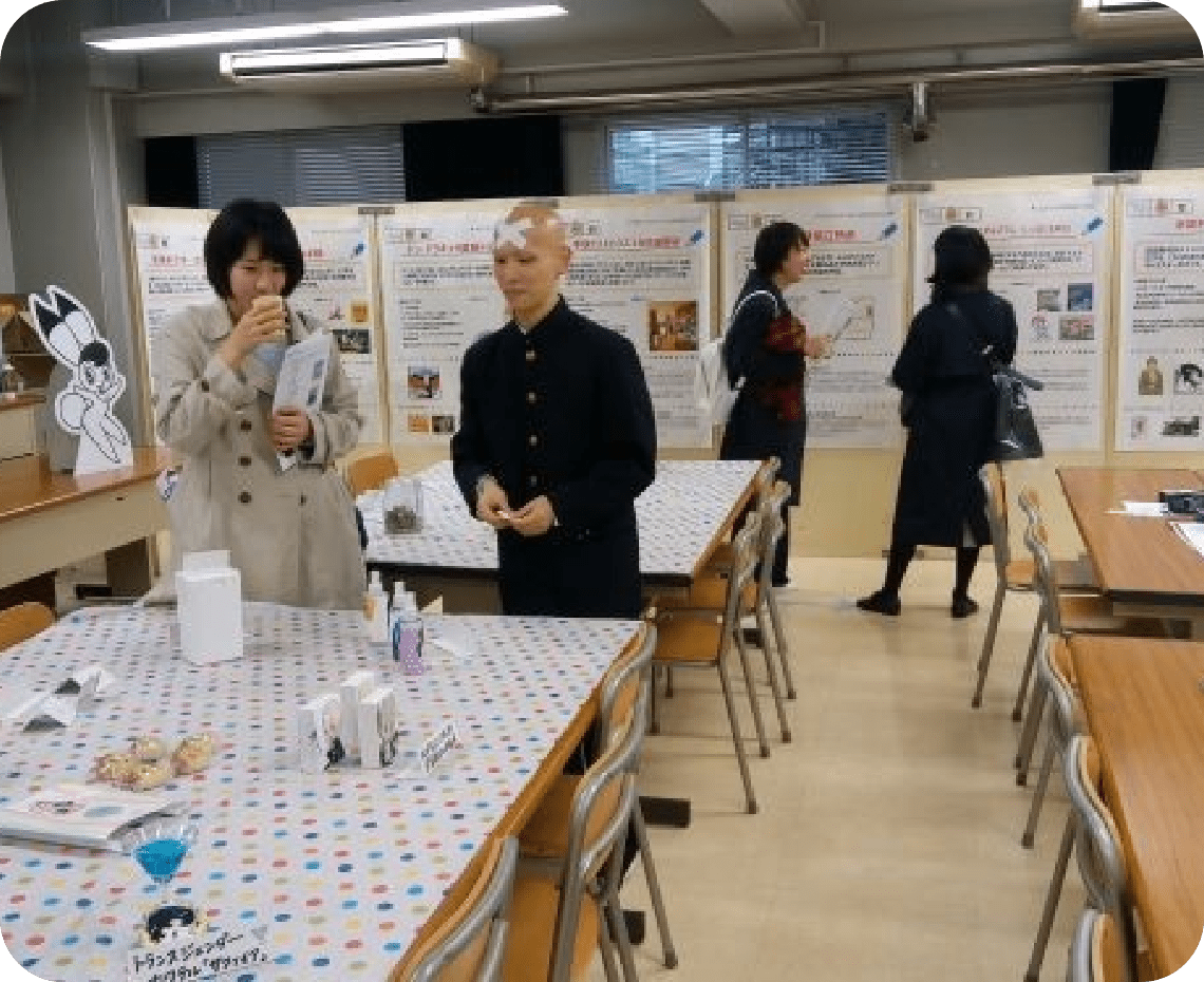 「高田馬場みやげをつくろう」という問題意識から、地元企業・店舗で販売できる手塚キャラクター商品を学生が考案。一部はプロトタイプを開発し、地域企業・店舗にプレゼンテーションしました。開発プロセスで地元商店にインタビューを実施し、地域の経済的な課題を把握することにも努めました。